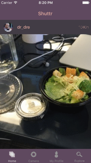 Shuttr was developed by Phil Henson, Lin Wei, and myself in an effort to investigate the social vertical and examine the nuances of Instagram feature for feature. I was able to gain a comfortability in Parse in fleshing out a cloud backend as well as creating custom views.